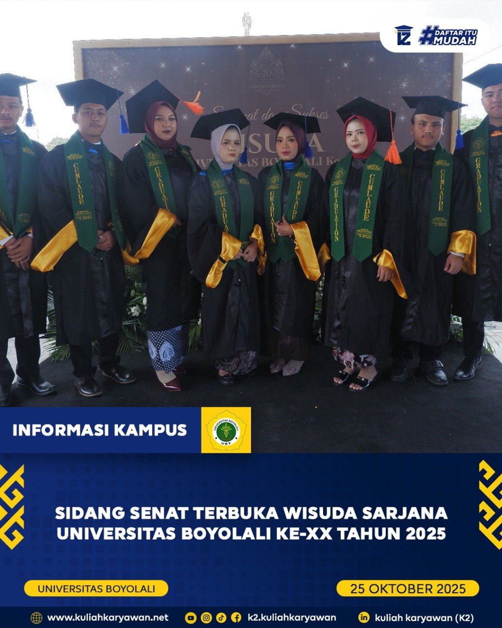 Selamat datang di website Universitas Boyolali (UBY). Kami merasa terhormat atas kunjungan Anda sekalian, semoga Anda senantiasa tertarik untuk memanfaatkan website ini dalam mencari dan mendapatkan informasi tentang segala aktivitas dari civitas akademika di UBY.
